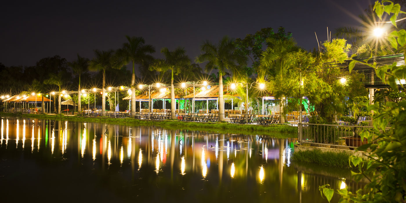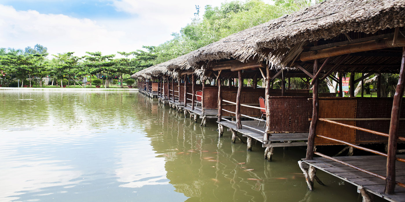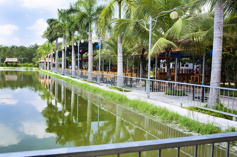 “As an eco-parks, recreational fishing combined with country cuisine. Coming here you will be very interesting with the rustic image, characterized Southern country with coconut, pineapple bananas, monkeys swinging bridge, the car Lei, or winding country road, winding. Especially where diners enjoy dishes Southwest characterized chefs from many years of experience of Xuan Huong..”